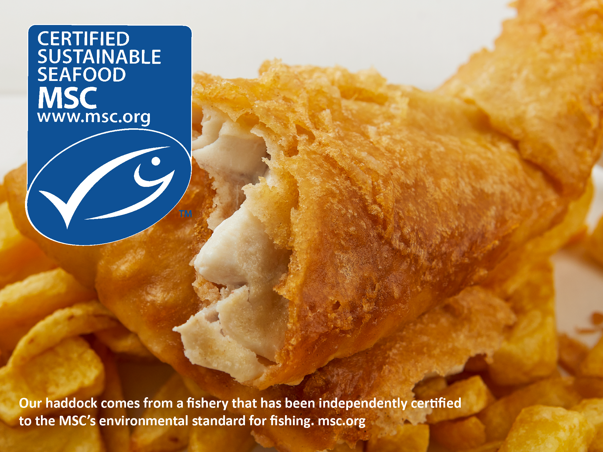In 2013 we became members of the Marine Stewardship Councils (MSC) Chain of Custody, meaning all our haddock comes from a fishery that has been independently certified to the MSC’s environmental standard for fishing. We we can trace it to the vessel and ocean in which it was caught. Each year, the MSC evaluates wild fisheries and uses scientific data to assess the health of its fish species. Just like the MSC, we are committed to safeguarding the future of our oceans and fish stocks, and our fish sourcing policy reflects that.